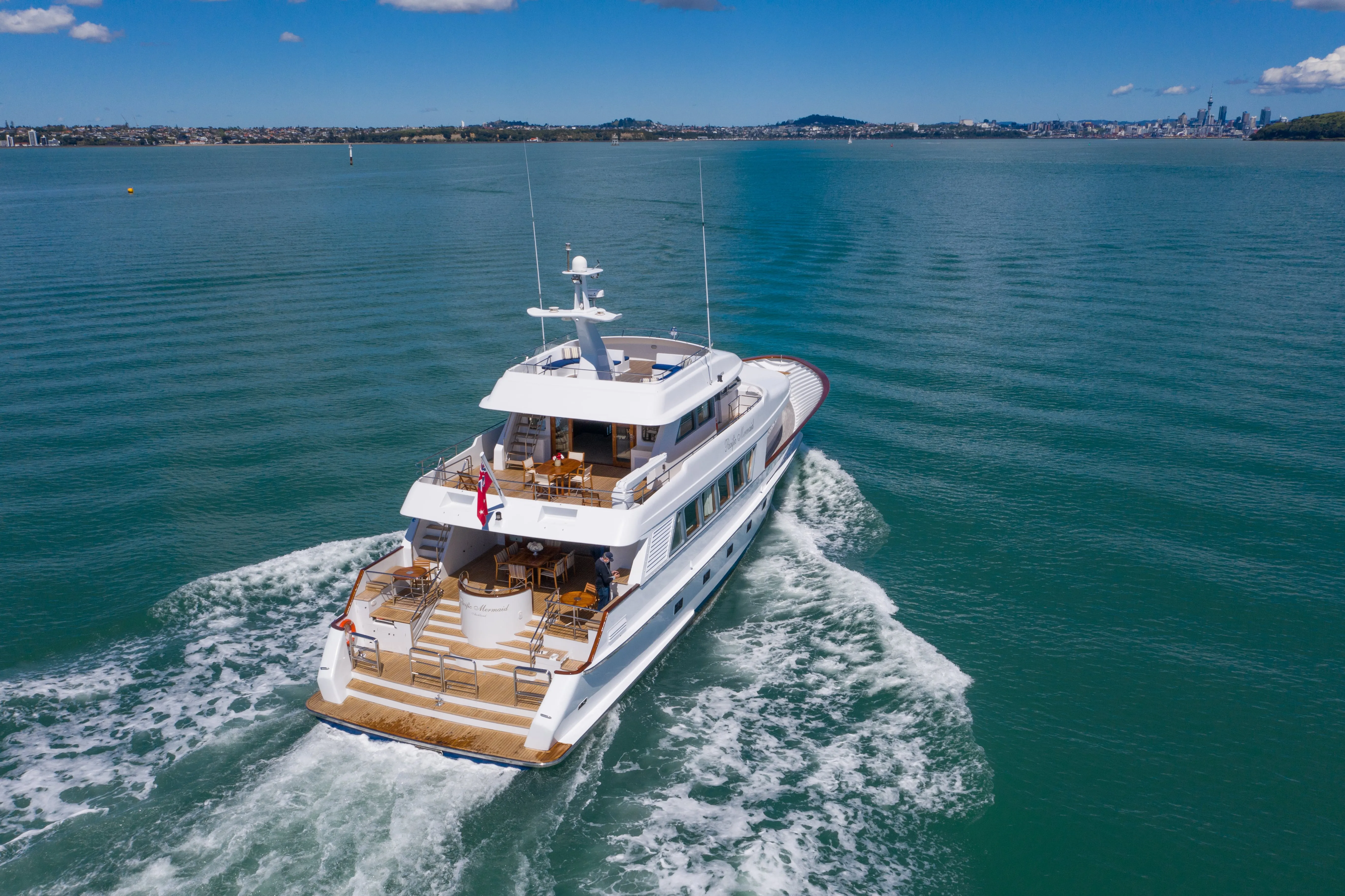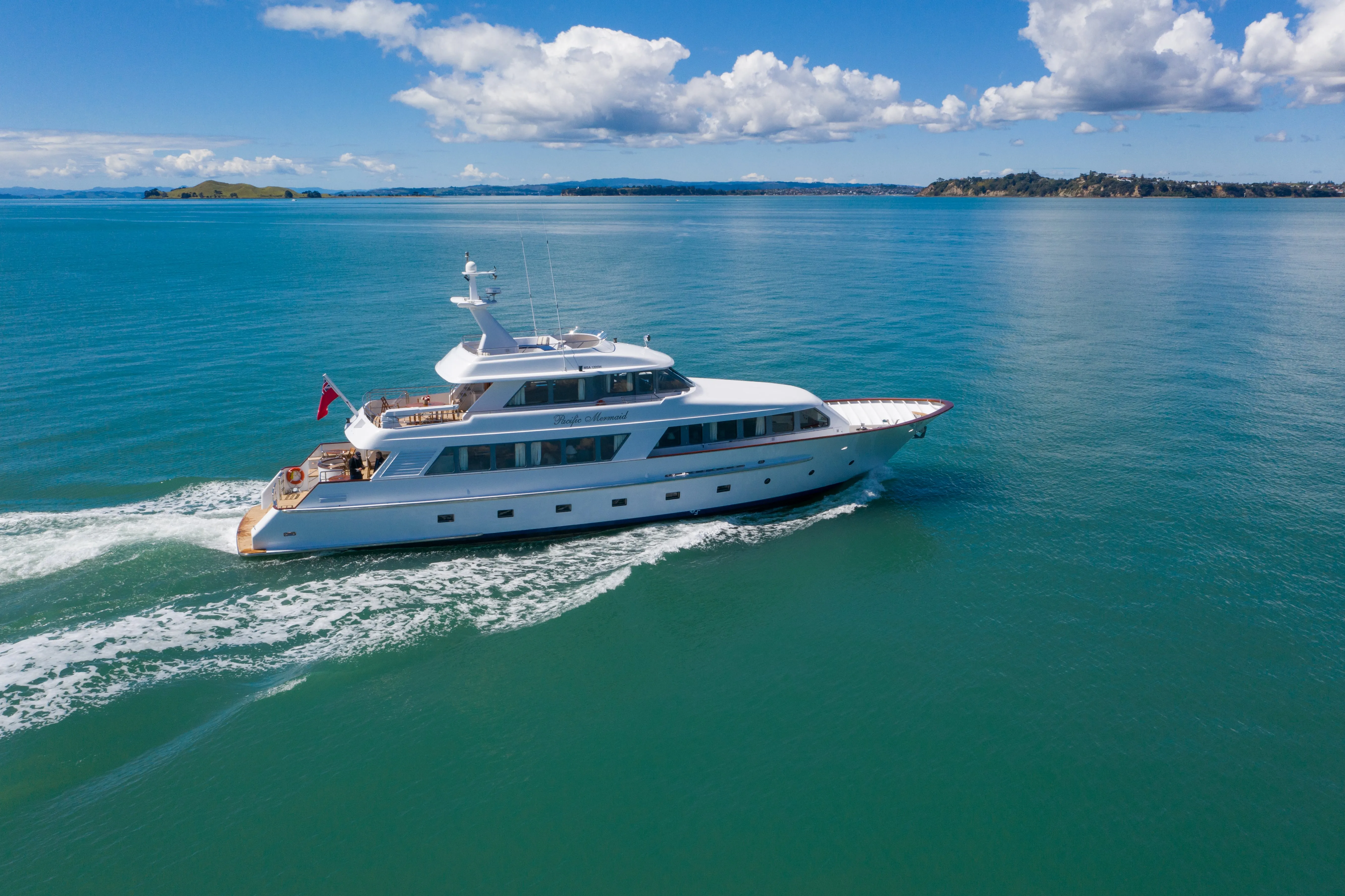 PACIFIC MERMAID is one of Auckland's premier luxury yachts available for charter, often hosting esteemed guests, including the New Zealand Prime Minister, foreign heads of state, and other dignitaries. The yacht offers both overnight and day charters in Auckland, as well as voyages throughout the South Pacific.