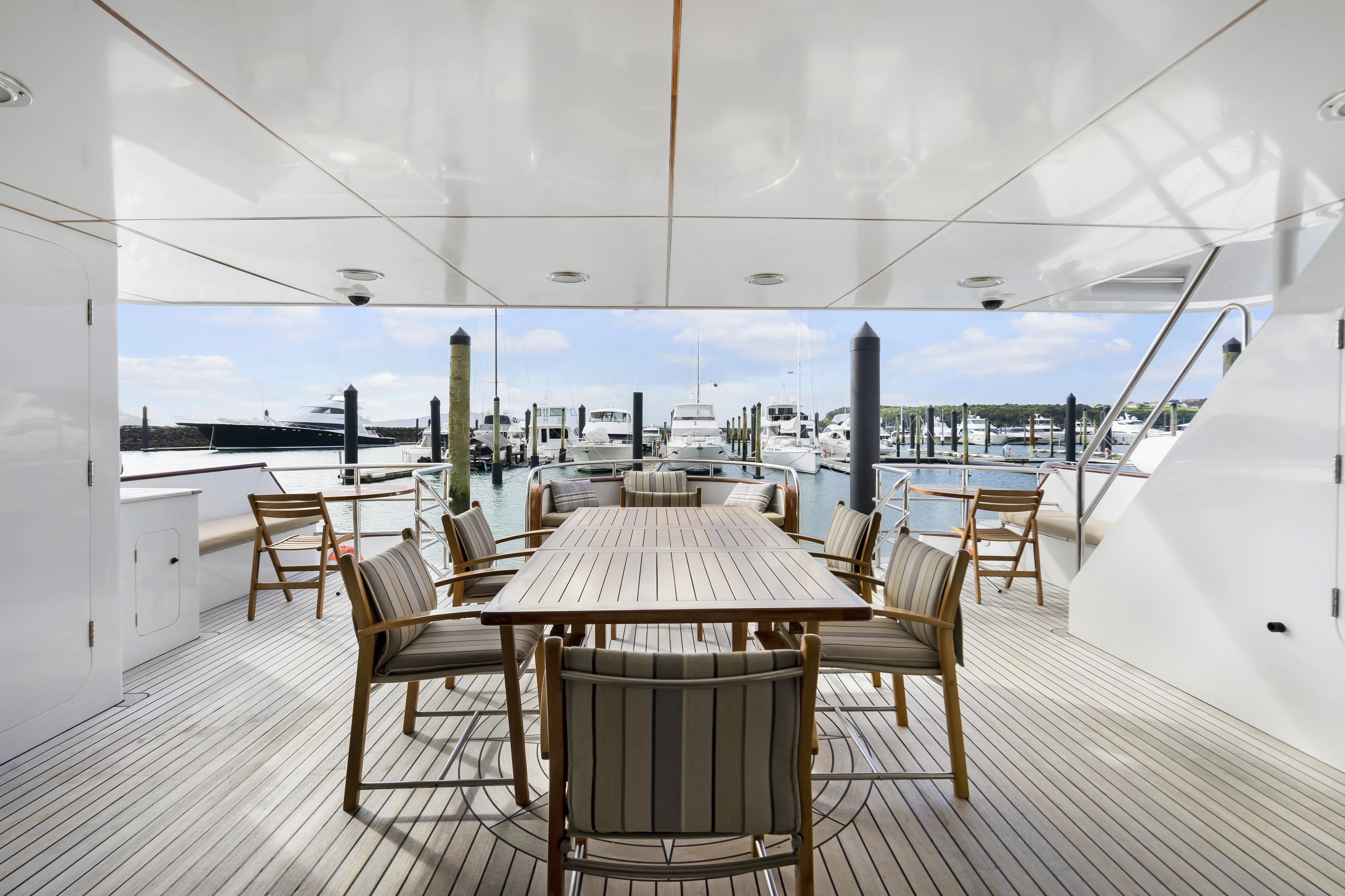 Board PACIFIC MERMAID from the expansive aft deck and be greeted with freshly refurbished beautiful teak decking that leads you from the swim platform up to the main saloon.